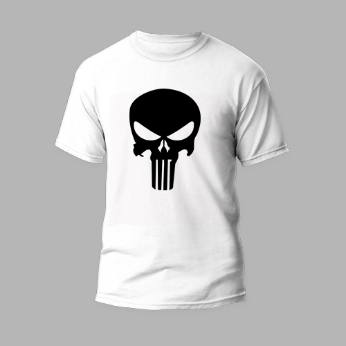 white round neck t-shirt with skull
