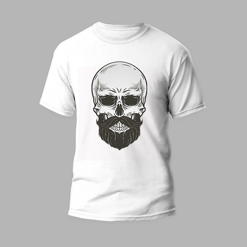 white round neck tshirt beard skull